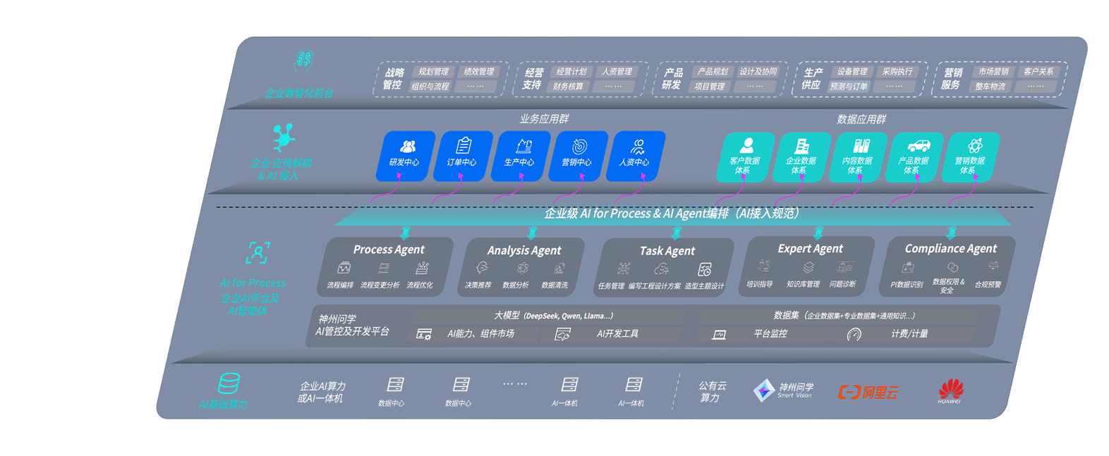 Z6尊龙时凯问学智车解决方案是一套基于AI技术的汽车行业智能化系统,,,,覆盖从底层算力到顶层AI应用的全栈方案。。。方案由算力层、、模型层和应用层组成:算力层,,,方案支持多种一体机配置,,,具备云端灵活部署、、、、多云适配以及动态优化计算资源的能力;模型层,,,,Z6尊龙时凯问学平台版提供了企业级AI应用一站式构建与管理平台,,支持基于后训练强化技术的汽车企业专属模型的训练、、评测和运营;应用层,,,,Z6尊龙时凯问学DeepSeek版提供包括超级员工、、智能招采、、、、智能营销、、、智能客服、、、AI for BI等一系列解决方案,,可助力汽车行业实现数字化转型,,,让管理更智能、、响应更敏捷。。