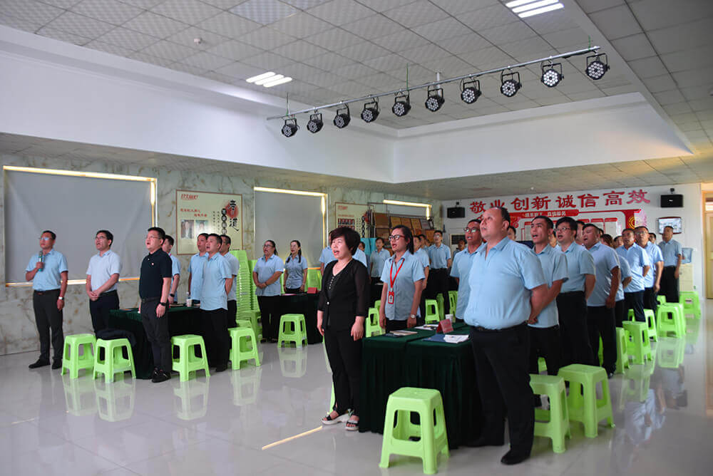 会议在雄壮的国歌声中开始,由集团执行总裁刁兴广主持。