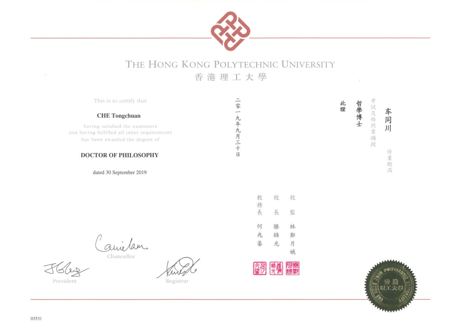 学位:香港理工大学哲学博士