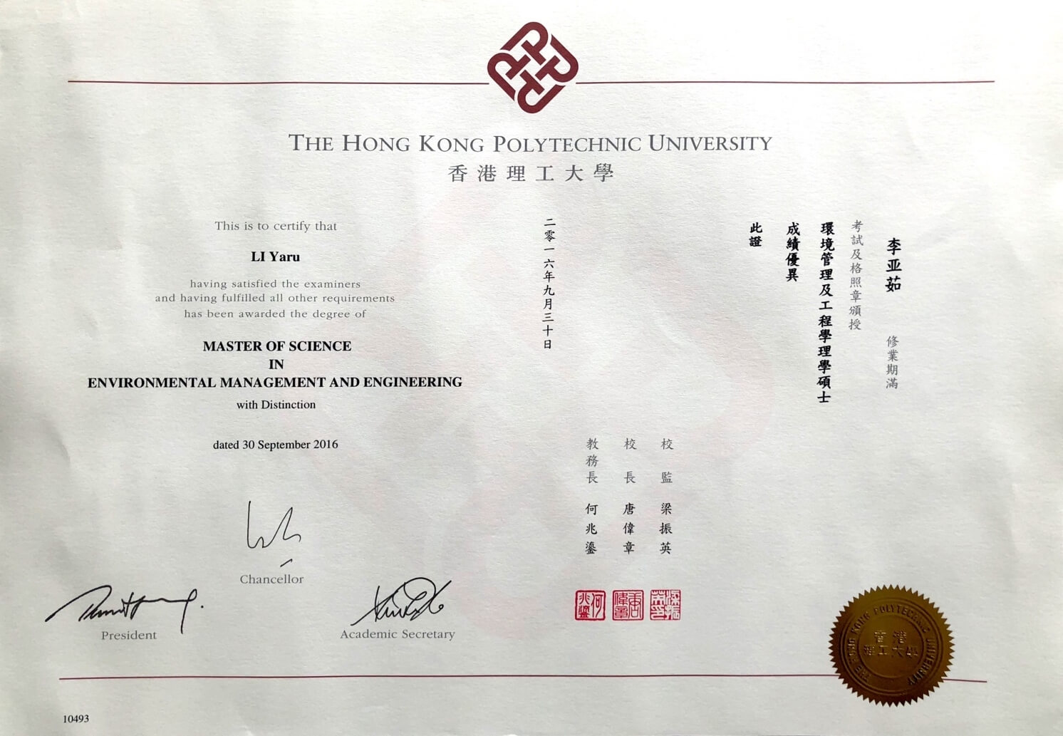 学位:香港理工大学理学硕士
