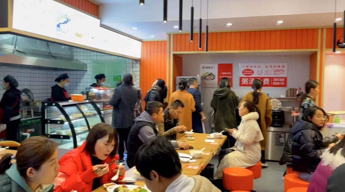 走进佰饺汇,只见人头攒动,食客们摩肩接踵,张张桌子座无虚席 ,排着长队等候点餐的食客们络绎不绝 ,门庭若市,店内的工作人员也忙的不亦乐乎。以橙色为主调的店内装潢为寒冬增添了一份活泼与温暖。“饺子确实不错”、“这家店的甜沫真好喝”......热气腾腾的饺子帮你驱逐冬日的严寒 ,免费的汤粥暖胃又暖心。